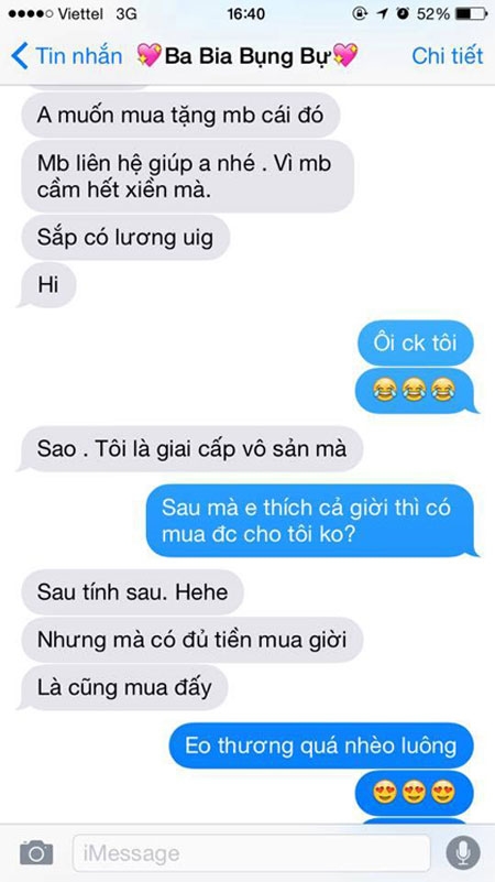 | Mẩu tin nhắn đáng yêu của chồng chị Hoa gửi cho vợ chiều 7/3. |