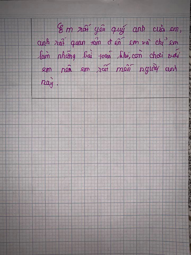 Dù bài văn có chút hơi quá tay khi viết nhưng phải công nhận rằng, người anh trai đã có một cô em gái cực đáng yêu lại vô cùng thương mình. Dân mạng tỏ ra vô cùng thích thú và thậm chí còn khen ngợi tình cảm cô bé dành cho ông anh.