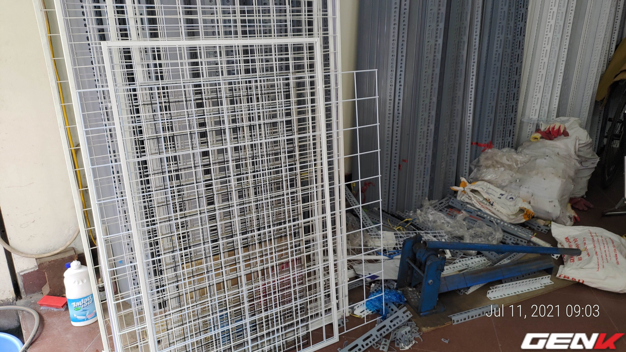 1. Tấm lưới sắt ô vuông với kích thước các mắt lưới 5x5 cm, đường kính của sợi lưới 2-3 mm. Loại lưới này các bạn có thể mua được ở các cửa hàng bán đồ kim khí, vật tư điện nước,... với giá dao động từ 65-80K/tấm loại 1m x 1m, hoặc 130K/tấm loại 2m x 1m.