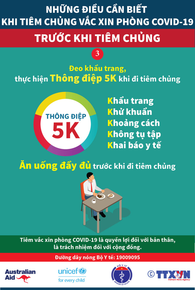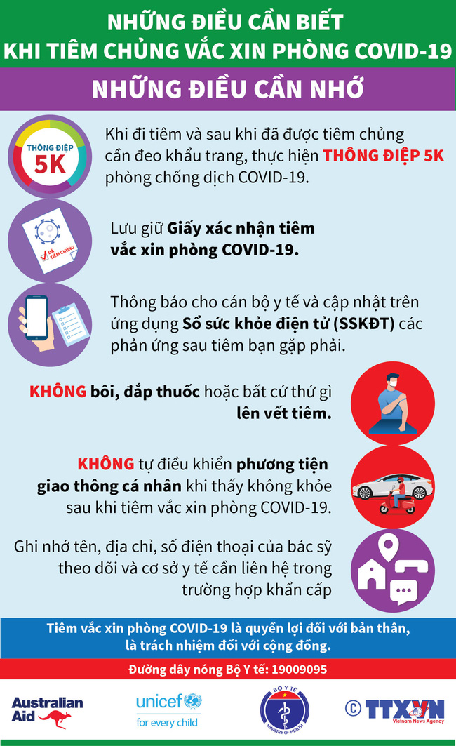 Mới đây, Bộ Y tế phối hợp Thông tấn xã Việt Nam, UNICEF Việt Nam thực hiện bộ Infographic "Những điều cần nhớ khi tiêm chủng vắc xin phòng COVID-19".