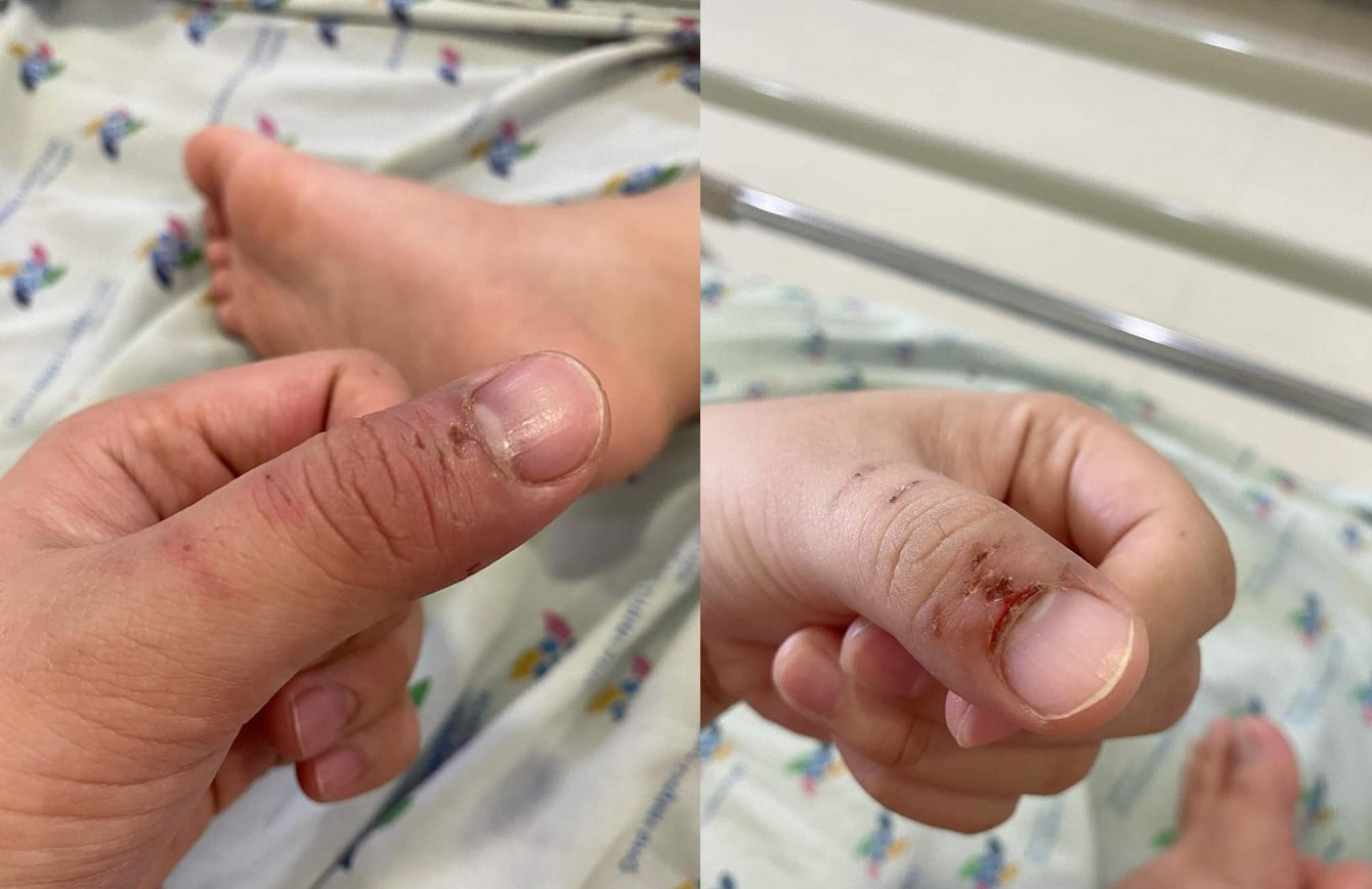 Theo bác sĩ Nguyễn Cát Phương Vũ, Bệnh viện Nhi đồng Thành phố (TP.HCM), hình ảnh ngón tay nhiều vết cắn, trầy trụa, được chia sẻ trên Fanpage bệnh viện là của một phụ huynh có con đang điều trị. Bé nhập viện sau cơn sốt, co giật.