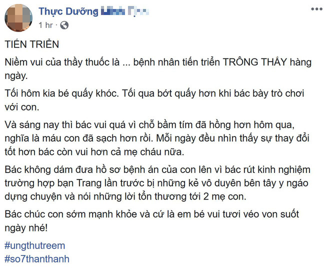 N.B thậm chí còn cập nhật tình hình "điều trị" ung thư máu của cháu bé trên trang bán hàng của mình.