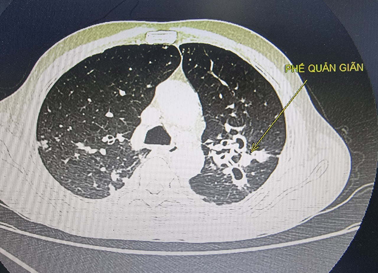 Kết quả chụp cắt lớp vi tính cho thấy bệnh nhân bị giãn phế quản hai bên phổi, động mạch phế quản hai bên giãn ngoằn ngoèo, có luồng thông với động mạch phổi. Các bác sĩ đã hội chẩn can thiệp nút động mạch phế quản cầm máu cho bệnh nhân.