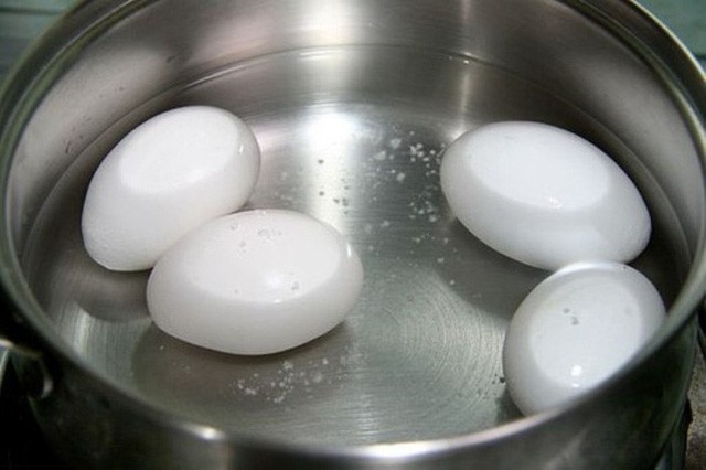 Trứng gà luộc ngâm vào nước lã