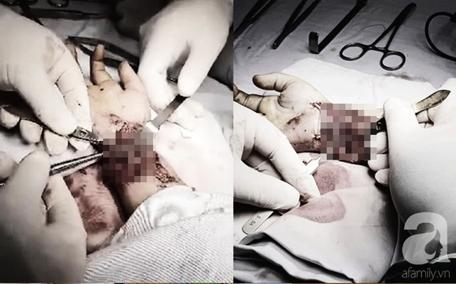 Quá trình phẫu thuật, bác sĩ phát hiện bé bị đứt 7 cọng gân, đứt dây thần kinh trụ và cả động mạch trụ nên máu rất khó cầm.