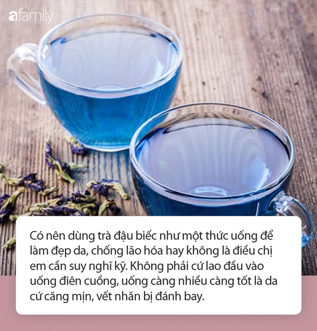 Thế nên, quay trở lại câu chuyện có nên dùng trà đậu biếc như một thức uống để làm đẹp da, chống lão hóa hay không là điều chị em cần suy nghĩ kỹ. Không phải cứ lao đầu vào uống điên cuồng, uống càng nhiều càng tốt là da cứ căng mịn, vết nhăn bị đánh bay.