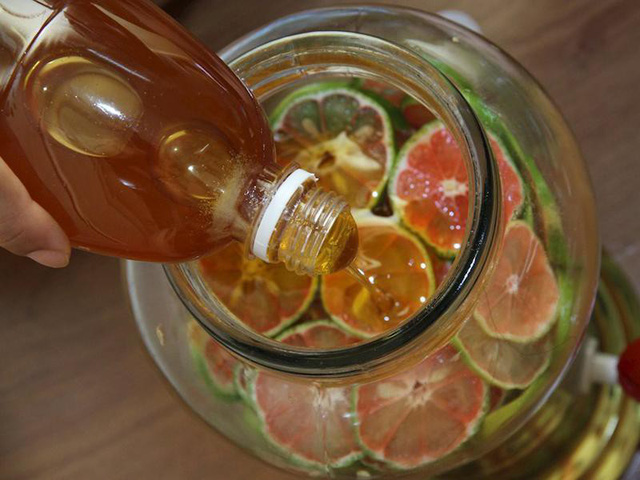 - Lấy đường phèn đập nhỏ, cứ một lớp đường lại một lớp chanh. Khi nào hết chanh, đường thì đổ một lớp mật ong lên trên.