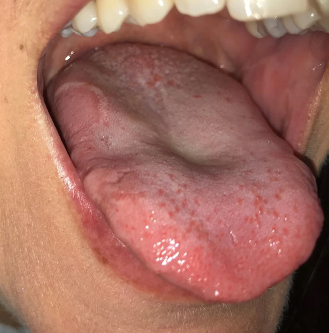 Một dấu hiệu khác mà các chuyên gia cho rằng có thể sử dụng để xác định ‘lưỡi Covid’ là xuất hiện mụn nhỏ đỏ hoặc trắng trên bề mặt hoặc hai bên lưỡi.