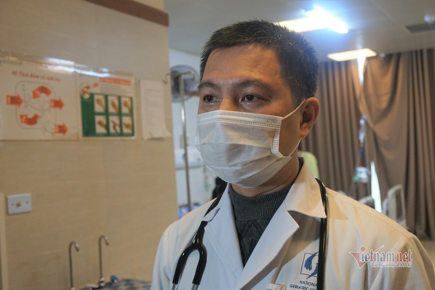 Một trong những trường hợp nặng nhất đang được bác sĩ Cường cùng các đồng nghiệp điều trị là nam bệnh nhân Đinh Văn L. (71 tuổi, ở Bắc Giang). Người này có tiền sử bệnh phổi tắc nghẽn mạn tính, việc nhiễm lạnh gây viêm phổi khiến bệnh tiến triển lên đợt cấp.