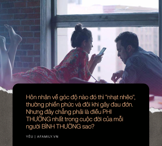 Hôn nhân về góc độ nào đó thì "nhạt nhẽo", thường phiền phức và đôi khi gây đau đớn. Nhưng đây chẳng phải là điều PHI THƯỜNG nhất trong cuộc đời của mỗi người BÌNH THƯỜNG sao?