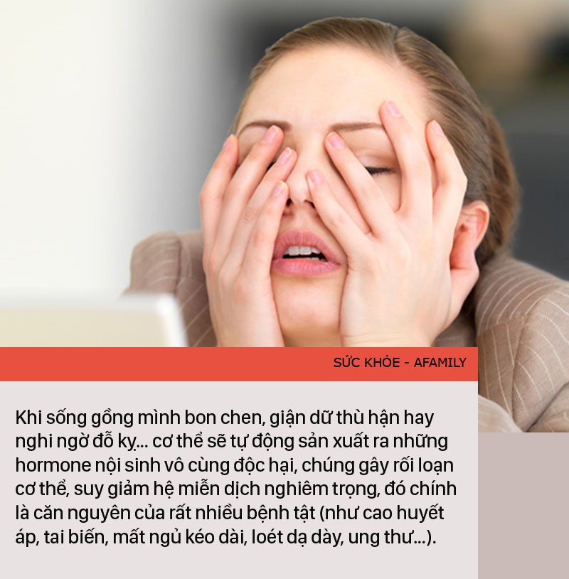 Khi sống gồng mình bon chen, giận dữ thù hận hay nghi ngờ đỗ kỵ… cơ thể chúng ta sẽ tự động sản xuất ra những hormone nội sinh vô cùng độc hại, chúng gây rối loạn cơ thể & suy giảm hệ miễn dịch nghiêm trọng, đó chính là căn nguyên của rất nhiều bệnh tật (như cao huyết áp, tai biến, mất ngủ kéo dài, loét dạ dày, ung thư…).