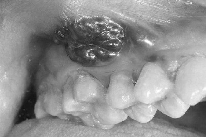 Bệnh nhân là ông Nguyễn Văn N. (71 tuổi, trú ở Nam Định) vào viện trong tình trạng u to lấp đầy miệng khiến người bệnh không ăn uống được. Sáu tháng trước, ông N. thấy trong miệng xuất hiện khối sùi loét, đau, ăn uống vướng. Nhưng bệnh nhân nghĩ bị nhiệt miệng nên không khám.