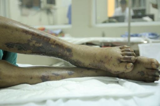 Khi nhiễm khuẩn huyết, ngoài các triệu chứng như sốt cao, đau đầu, ù tai, bệnh nhân sẽ có dấu hiệu xuất huyết dưới nhiều dạng khác nhau (xuất huyết dưới da từng mảng, đôi khi gây hoại tử, xuất huyết tiêu hóa).