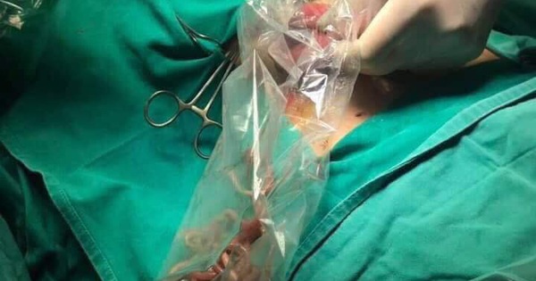 Tại BV Việt Đức, các bác sĩ phát hiện hình ảnh sốc, khi chỉ trên 1 đoạn ruột dài 30cm có khoảng 50 lỗ thủng. Khi tiến hành cắt đoạn ruột bị thủng là đoạn cuối hồi tràng dài khoảng 30 cm có 50 lỗ thủng, đường kích 0,5-1cm.