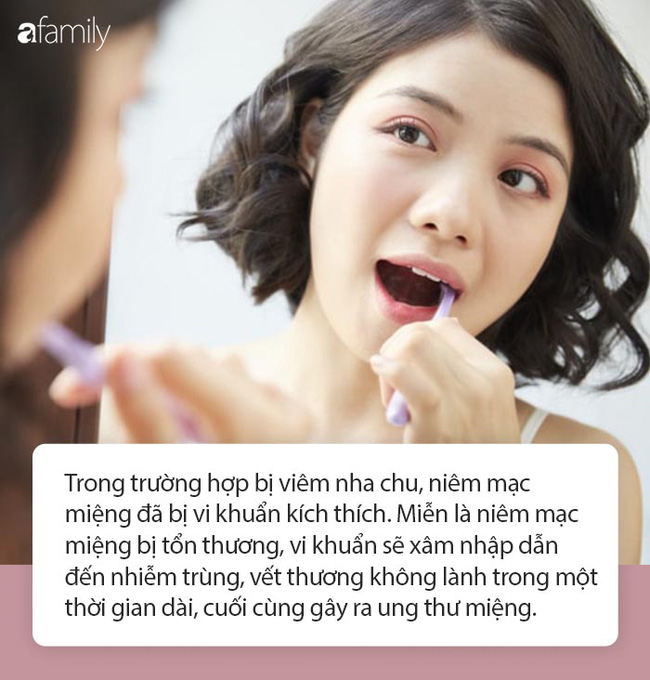 Môi trường răng miệng càng bẩn thì nguy cơ ung thư miệng càng cao. Trong trường hợp bị viêm nha chu, niêm mạc miệng đã bị vi khuẩn kích thích. Miễn là niêm mạc miệng bị tổn thương, vi khuẩn sẽ xâm nhập dẫn đến nhiễm trùng, vết thương không lành trong một thời gian dài, cuối cùng gây ra ung thư miệng.