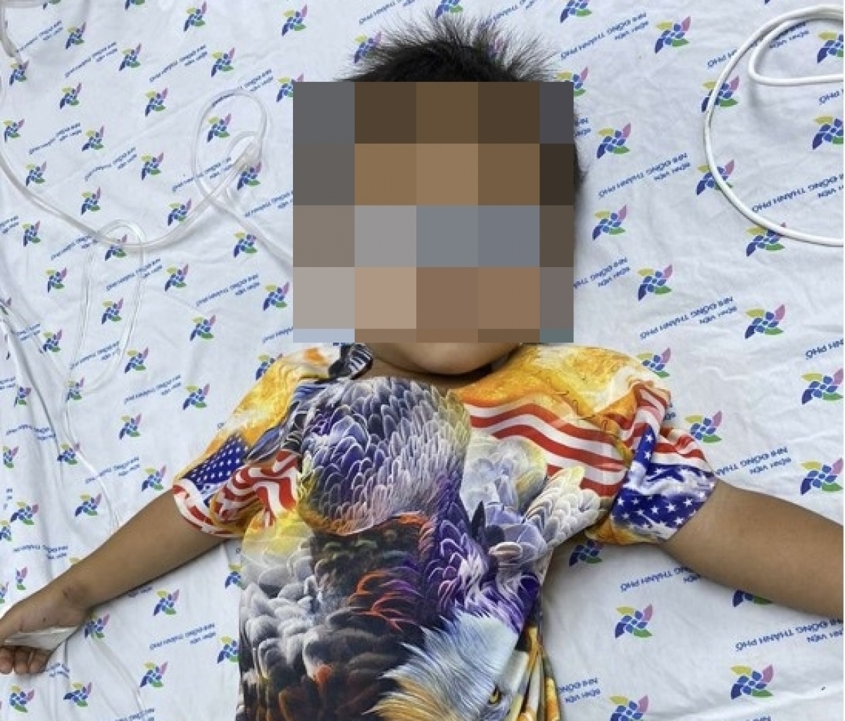 Bệnh nhi Ng.H. M., 30 tháng tuổi, ngụ ở huyện Tân Phước, tỉnh Tiền Giang được đưa vào Bệnh viện Nhi đồng Thành phố trong tình trạng li bì, thở mệt, tím tái. Theo gia đình, trước đó khoảng 1 giờ, do khát nước, bé đã uống dung dịch tẩy mực in được đựng trong chai trà xanh 0 độ. Ngay sau đó, bé bị ho sặc sụa, tím tái, nôn ói nhiều. Người nhà nhanh chóng đưa trẻ tới bệnh viện tỉnh, được cấp cứu thở oxy, tiêm kháng sinh, sau đó chuyển bệnh viện Nhi đồng Thành phố.