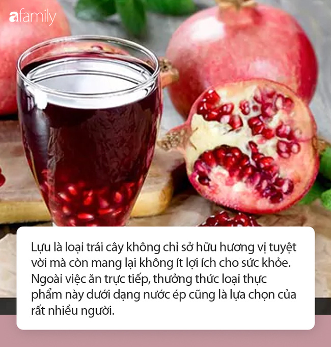 Lựu là loại trái cây không chỉ sở hữu hương vị tuyệt vời mà còn mang lại không ít lợi ích cho sức khỏe. Ngoài việc ăn trực tiếp, thưởng thức loại thực phẩm này dưới dạng nước ép cũng là lựa chọn của rất nhiều người. Mọi người có thể tự làm nước ép lựu tại nhà bằng cách tách hạt, cho vào máy xay xay mịn rồi lấy phần nước. Dưới đây là tổng hợp một số lợi ích của nước lựu chắc chắn sẽ làm bạn tiêu thụ loại quả này nhiều hơn: