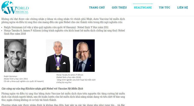 Lời quảng cáo trên website của trung tâm làm đẹp và chăm sóc sức khỏe này có viết: "Không chỉ riêng người bệnh ung thư mà người khỏe mạnh cũng nên sử dụng ngay từ khi chưa có các dấu hiệu của tế bào ung thư. Người khỏe mạnh được khuyến khích nên phòng ngừa và nâng cao sức khỏe với loại vaccine này".