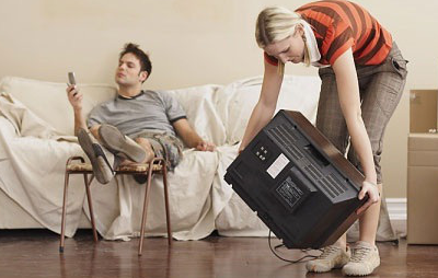 Người vợ gần như ngay lập tức bước tới vặn nhỏ tiếng tivi và nói với chồng vẻ trách móc: "Anh sẽ không chết nếu giúp em một chút đâu!"