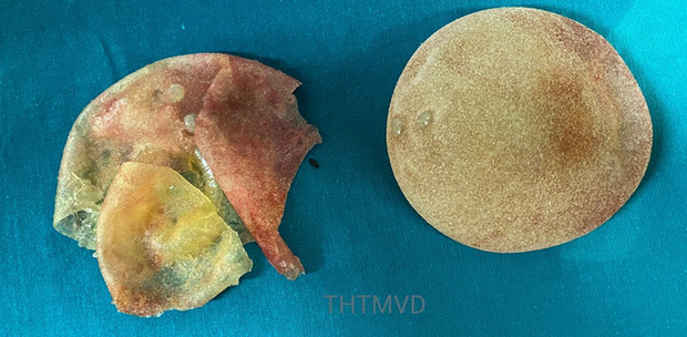 Theo PGS Hà, các phẫu thuật viên đã mất gần 2h để phẫu tích lấy hết phần bao xơ dày và làm sạch hết tổ chức silicone lỏng đã tràn ra ngoài. Vỏ xơ xù xì quanh túi cũng được gửi đi xét nghiệm giải phẫu bệnh để tìm xem có tế bào ác tính hay không.