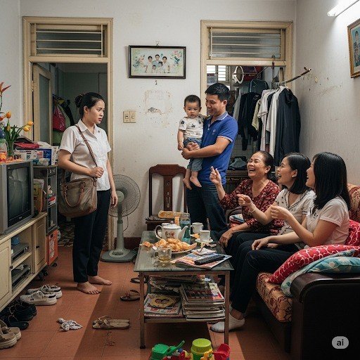 Mua được căn chung cư 70m2 dù vẫn còn nợ khá nhiều nhưng vợ chồng em cũng mừng và bảo nhau cố gắng cày cuốc lấy tiền trả nợ. Con cái giờ có nhà rộng rãi ở tụi nhỏ cũng thích. Thế nhưng mới ở được 1 tuần thì hôm em vừa đi làm về đã choáng váng thấy cả tá đồ đạc xếp ở phòng khách, nhà chồng 4 người đến hết nhà em còn mẹ chồng thì bảo:
