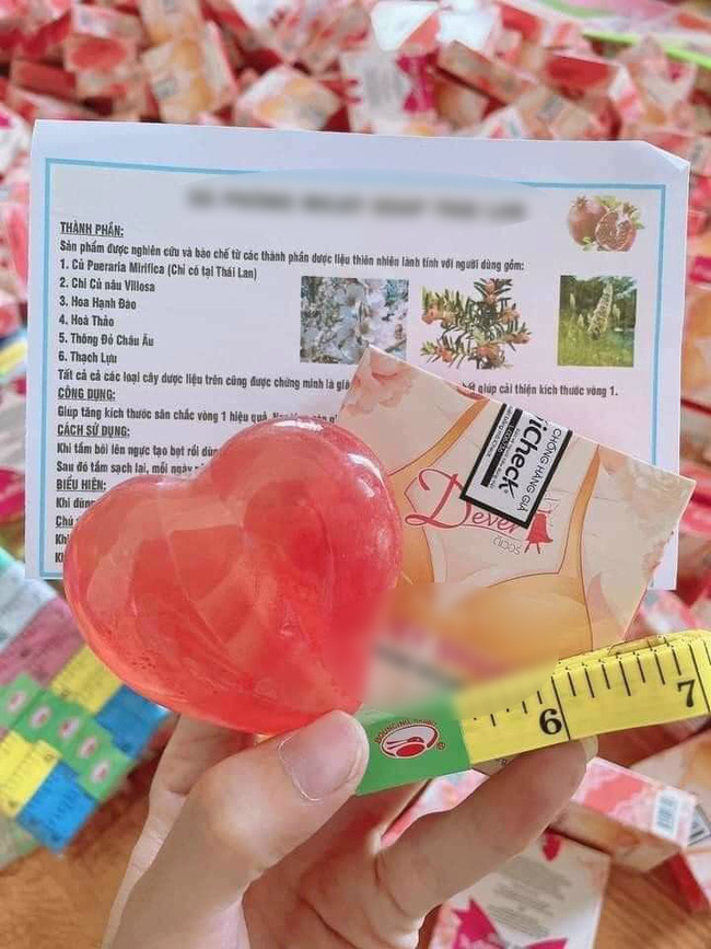 Món hàng được dự báo sẽ đắt như tôm tươi này được quảng cáo như sau: "Tác dụng vượt trội so với việc uống mầm đậu nành tăng kích cỡ vòng 1, tác dụng thậm chí gấp 20-30 lần so với việc dùng mầm đậu nành để bổ sung nội tiết tố". Khi được hỏi về việc dùng bao nhiêu bánh xà phòng sẽ tăng được kích cỡ vòng 1, chủ tài khoản khẳng định chắc chắn "sẽ tăng size tùy từng cơ địa, có người massage đúng cách, chỉ sau khi tắm 2-3 lần đã thấy tăng size vòng ngực thấy rõ. Mặc dù vậy cũng có những trường hợp phải dùng 3-4 bánh xà phòng mới hiệu quả...".