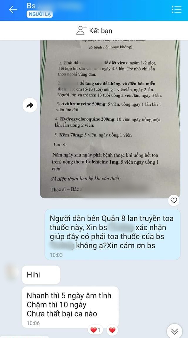 Mới đây, mạng xã hội lan truyền thông tin về 2 toa "thuốc điều trị COVID-19" do một người tự xưng là thạc sĩ, bác sĩ, chuyên gia thẩm mỹ tên Đ.X.T. kê đơn.