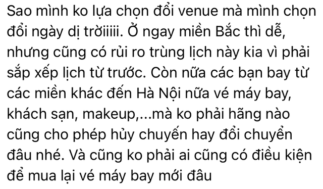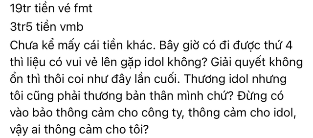 Không chỉ Hà Nội, rất nhiều fan từ các tỉnh thành trên cả nước sẽ cùng đổ dồn tới địa điểm tổ chức fan meeting theo đúng dự kiến. Giờ đây, vì chương trình bị hoãn lại quá gấp, họ khó lòng xoay xở thời gian biểu, đặc biệt là những bạn vướng lịch học hay công việc. Hơn thế nữa, nhiều người đã mua vé máy bay, trả tiền nhà ở tạm thời 1 cách phù hợp với lịch trình của họ. Việc dời lịch đột ngột như này vừa khiến họ lỡ mất kế hoạch đặt ra, vừa tốn thêm 1 khoản chi phí không nhỏ.