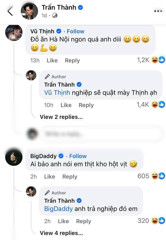Trấn Thành sau đó cũng không kém cạnh khi lên bài đánh tiếng cảnh cáo đàn em: "Con Diễm nó kiếm chuyện với tôi sáng giờ! Mấy ní coi phim Tết mà thấy vai của nó ngắn hơn cái đầu bút chì thì hiểu lý do vì sao nhé. Bên phải thấy cưng chứ bên trái thấy kinh nha!". Hậu concert 4 Anh trai say hi, Trấn Thành đã thu hút lượng tương tác "không phải dạng vừa".