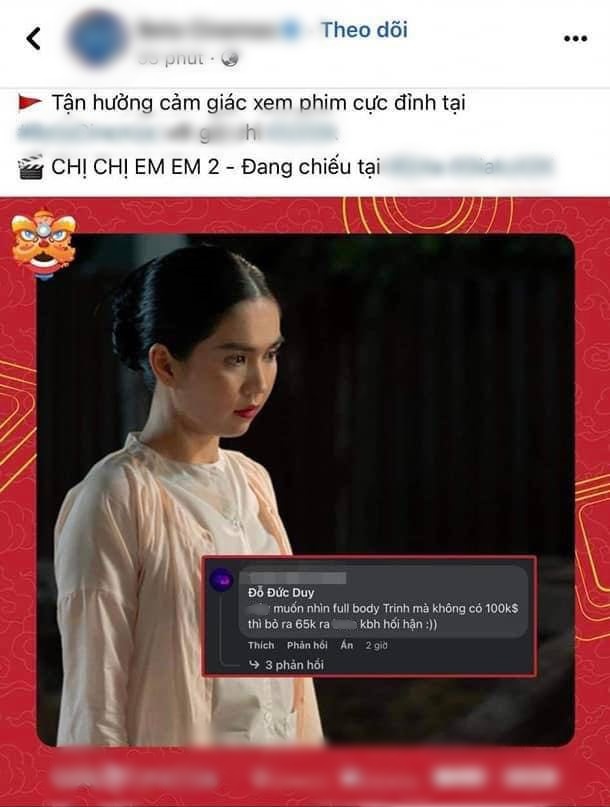 Bên dưới bài đăng, nhiều ý kiến phẫn nộ, chỉ trích rạp phim dùng chi tiết nhạy cảm để thu hút người xem. "Phim không có gì xem ngoài thân thể của Ngọc Trinh à?", "PR kém duyên thế!",... khán giả bình luận. Hiện tại bài đăng đã bị xóa sau khi bị chỉ trích dữ dội.