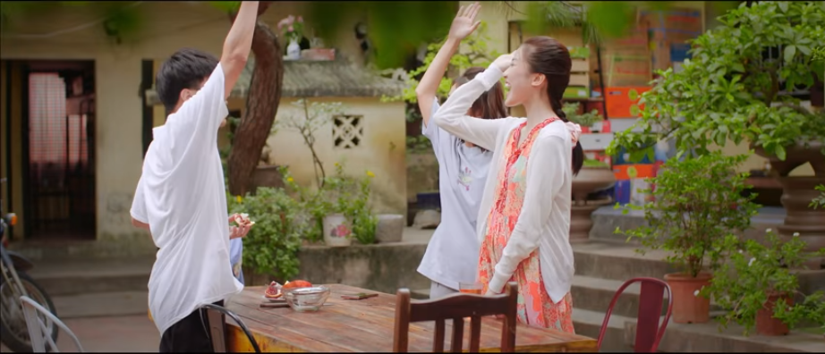 Trong một phân cảnh, Thục Anh mặc đầm bầu vui vẻ ăn uống cùng Long và Nhi. Có thể thấy tâm trạng của cô vô cùng thoải mái. Thục Anh cũng hạnh phúc khi được Nhi tặng một đôi giày nhỏ xinh cho em bé.