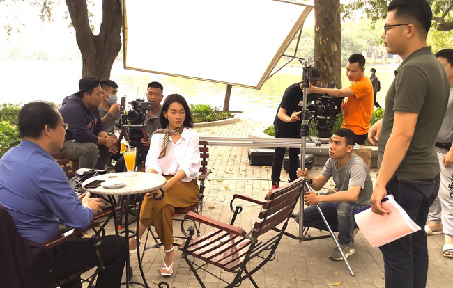 Hậu trường cảnh quay Nhi gặp gỡ một người đàn ông lớn tuổi.