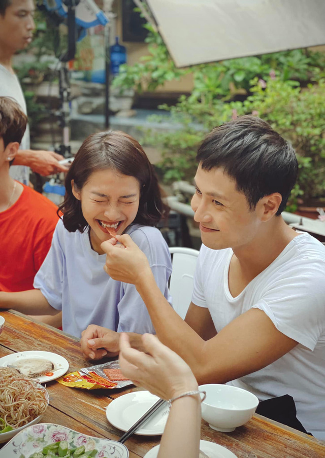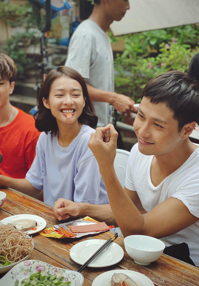 Không chỉ tình tứ trên phim, ngoài phim trường, Thanh Sơn và Khả Ngân cũng vô cùng thân thiết.