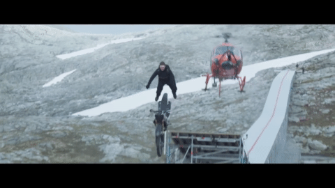 Trái ngược với những lo lắng của đoàn phim, Tom hoàn toàn thoải mái thực hiện pha hành động được đánh giá là mạo hiểm nhất lịch sử điện ảnh. Khi Tom lao xe xuống vách núi và mở dù thành công, ekip mới thở phào.