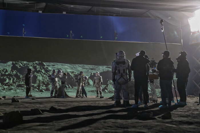 Màn hình xanh đã được thay thế bằng những bức tường LED giúp cho các diễn viên thúc đẩy trí tưởng tượng của họ và đắm chìm trong bối cảnh về mặt trăng cùng một không gian rộng lớn bao trùm. Khán giả từng bước được đưa đến trung tâm của mặt trăng thông qua hình ảnh định hướng chi tiết và chân thực nhờ qua 2 năm tiền sản xuất và khoảng 1 năm hậu kỳ.