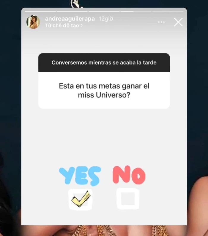 Cụ thể, khi được fan hỏi mục tiêu của chị có phải là giành chiến thắng Miss Universe đúng không. Á hậu 1 Hoa hậu Hòa bình Quốc không ngần ngại và đã trả lời "Say yes". Động thái này đồng nghĩa với việc, cô sẽ trở thành thí sinh tại cuộc thi Hoa hậu Hoàn vũ Ecuador, có thể là trong năm nay hoặc là một vài năm tới.