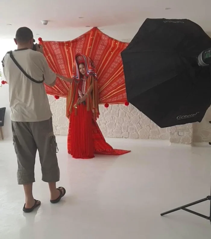 Theo đó, hình ảnh hậu trường của buổi chụp trang phục dân tộc cũng đã được tung ra. Trong bộ "Cô Em Dao Đỏ", mỹ nhân Cần Thơ xuất hiện với visual sáng bừng cả khung hình.