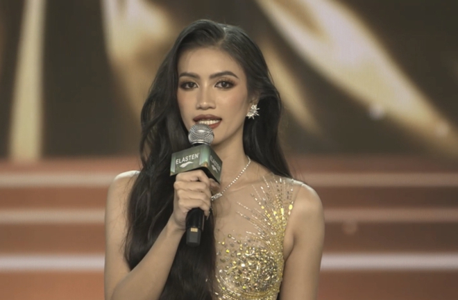 Thí sinh tiếp theo - Trương Quý Minh Nhàn (Huế) - bốc được câu hỏi về điều tự hào nhất khi nhắc đến quê hương. Cô trả lời bằng cả tiếng Việt và tiếng Anh: "Khi nhắc đến Huế, ngoài những tô bún bò ấm nóng, những chiếc bánh ép giòn tan và dòng sống Hương làm Hoàng Phủ Ngọc Tường say đắm. Con người Huế luôn được biết đến bởi sự bao dung, vị tha và lòng trắc ẩn. Em may mắn được sinh ra và lớn lên ở Huế và nhận thức được rằng mình còn đầy thiếu sót, khuyết điểm và yếu kém. Tuy nhiên, sinh ra ở Huế, những con người ở nới đây khiến em tin yêu, tự tin hơn vào bạn thân mình và cho em hiểu rằng chính sự bao dung, vị tha và lòng trắc ẩn sẽ đưa con người ta đi rất xa".