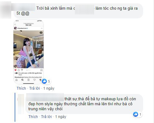 Đến fan không thể tin được là Thiều Bảo Trâm lại bị dìm nhan sắc đến mức này. Bình thường trẻ trung xinh đẹp, sang chảnh là thế giờ lại già như bà thím. Lên sóng truyền hình mà bị dìm hàng toàn tập thế này, mỗi khoảnh khắc quay cận mặt Thiều Bảo Trâm, dân tình lại hốt hoảng.