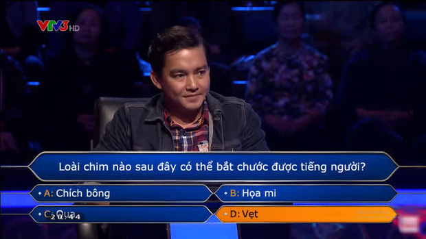 Người chơi nhanh chóng đưa ra câu trả lời là vẹt và được MC chấp nhận nhưng thực tế cả quạ và vẹt đều có thể bắt chước tiếng người.