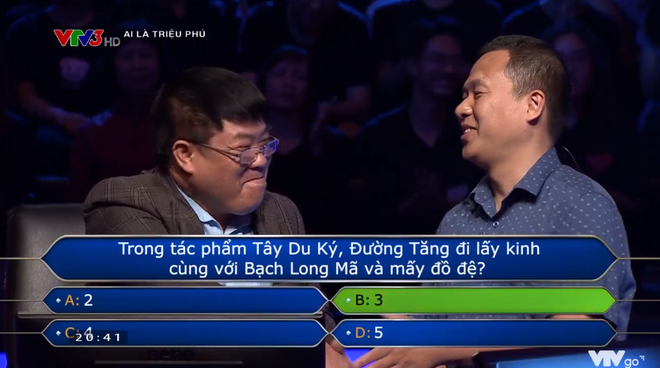 Người chơi sau đó đã nhờ đến sự trợ giúp cả người học trò đi cùng. Người học trò nhanh chóng đưa ra đáp án và tự tin với câu trả lời. Dù vậy, người thầy có vẻ không tin tưởng mà yêu cầu ngay học trò mình kể tên đầy đủ các đồ đệ của Đường Tăng.