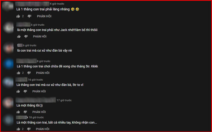 Bên dưới MV Là một thằng con trai của Jack hiện tại có phần trái chiều khi vừa có ý kiến bênh vực, tin tưởng nhưng đều bị áp đảo bởi những bình luận mỉa mai, cà khịa. Có lẽ sự việc ồn ào lần này của Jack đã thật sự mất điểm trầm trọng trong mắt công chúng khán giả.