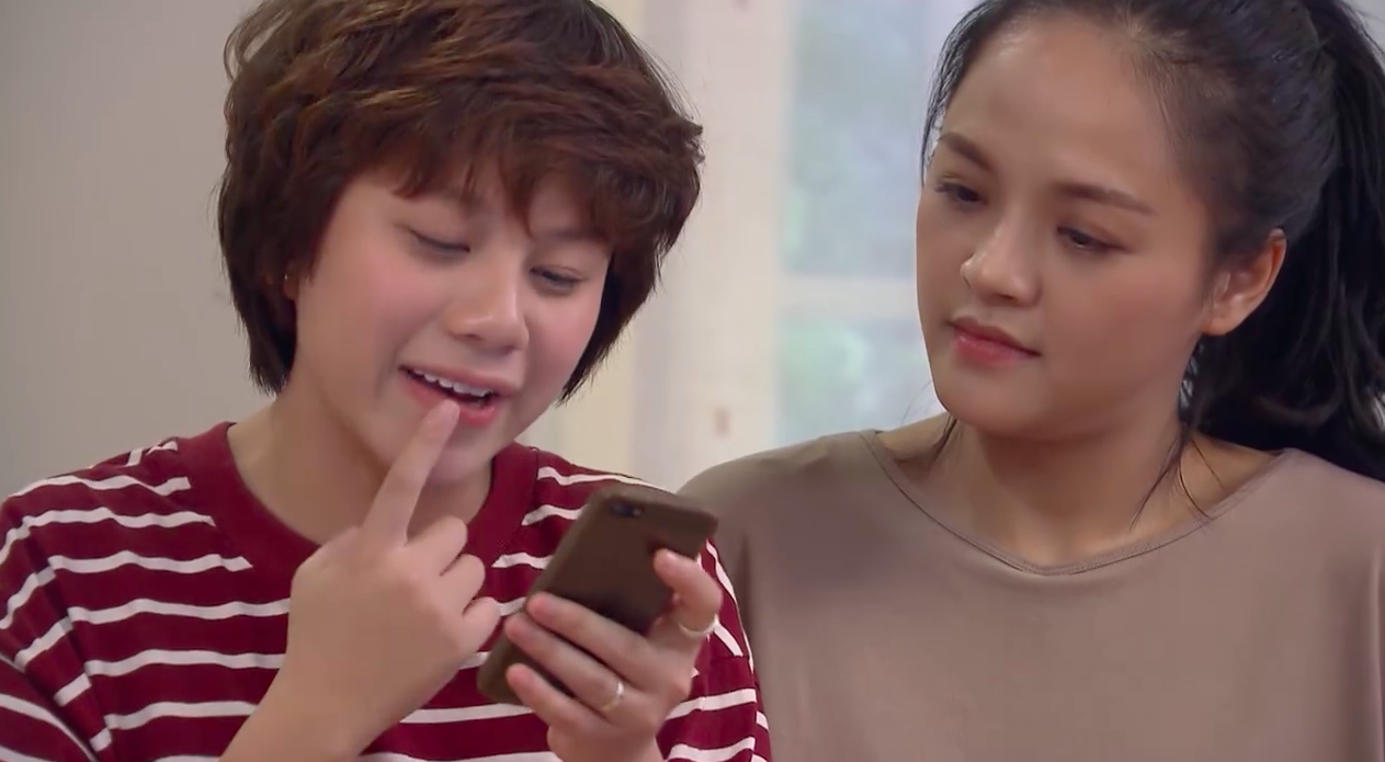 Rồi khi đến nhà Bảo chơi, Dương lật mặt thậm chí còn nhanh hơn lật bánh tráng. Phút trước, Dương vừa trợn mắt cau mày với Bảo vì dám ngăn cản tình yêu của mình với chú Quốc (Tuấn Tú). Thì ngay phút sau, cô đã bẽn lẽn, thẹn thùng trước mặt "người thương trong mộng" của mình.