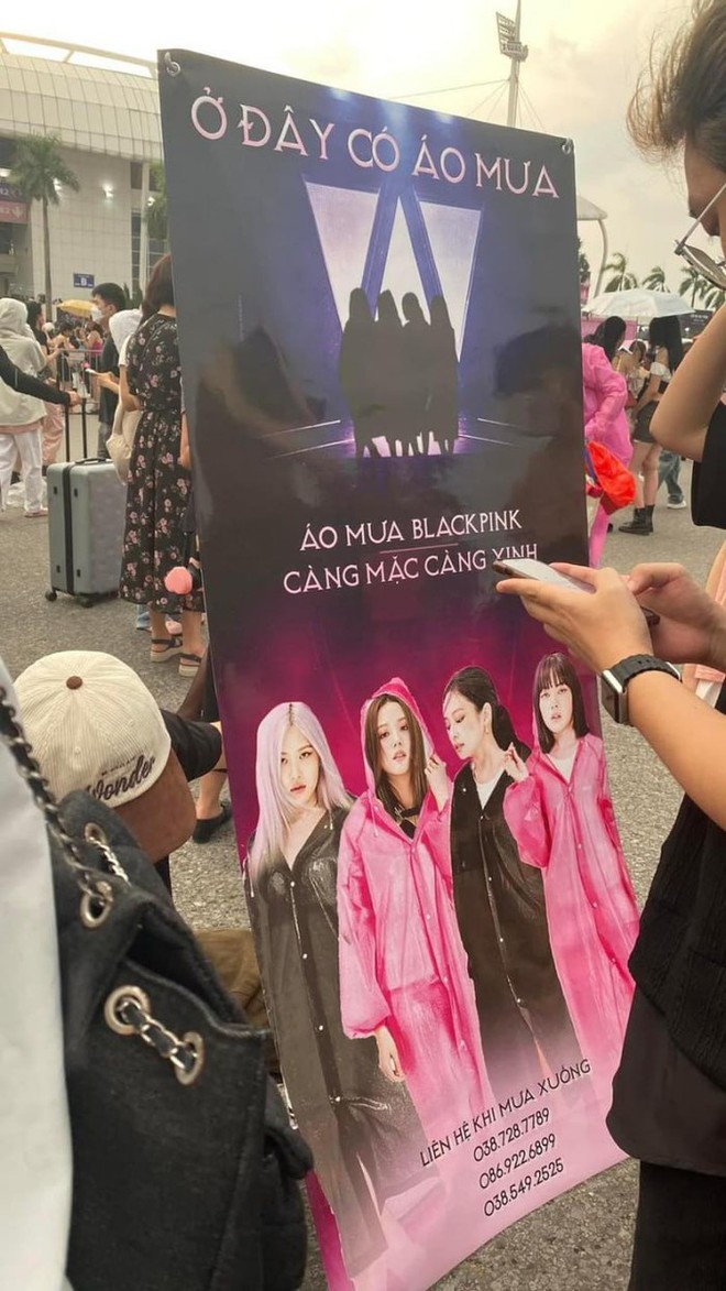 Trước buổi biểu diễn concert BLACKPINK 29/7 tại SVĐ Mỹ Đình hôm nay (29/7), cơn mưa lớn đã ập xuống khiến hàng nghìn người có mặt trở nên bối rối, hỗn loạn, vội vàng tìm chỗ trú và tìm nơi mua áo mưa. Trước đó, dự báo thời tiết đã đưa ra cảnh báo tỉ lệ có mưa lên đến 70%, do đó nhiều tiểu thương đã thức thời với việc kinh doanh mặt hàng này.