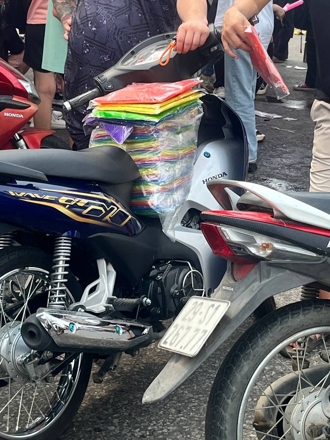 Theo thông tin ghi nhận, ngay từ thời điểm trưa chiều nắng nóng gay gắt, nhiều tiểu thương đã có mặt tại SVĐ. Chỉ chờ ngay khi mưa xuống, áo mưa ngay lập tức "cháy hàng", giá nào cũng có người mua.