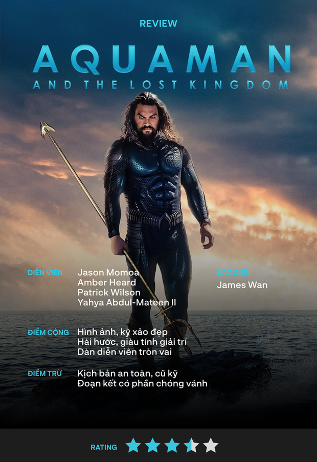 Aquaman and The Lost Kingdom có thể không phải một bom tấn siêu anh hùng đột phá, vượt qua cái bóng của phần phim trước. Tuy nhiên, đây vẫn là một tác phẩm giàu tính giải trí với khâu hình ảnh, âm thanh xuất sắc, đủ sức làm vừa lòng đa số khán giả khi ra rạp. Bộ phim cũng là tác phẩm đáng xem nhất Vũ trụ Điện ảnh DC trong năm qua, vượt xa chất lượng của những cái tên như Blue Beetle, The Flash hay Shazam! Fury of the Gods.