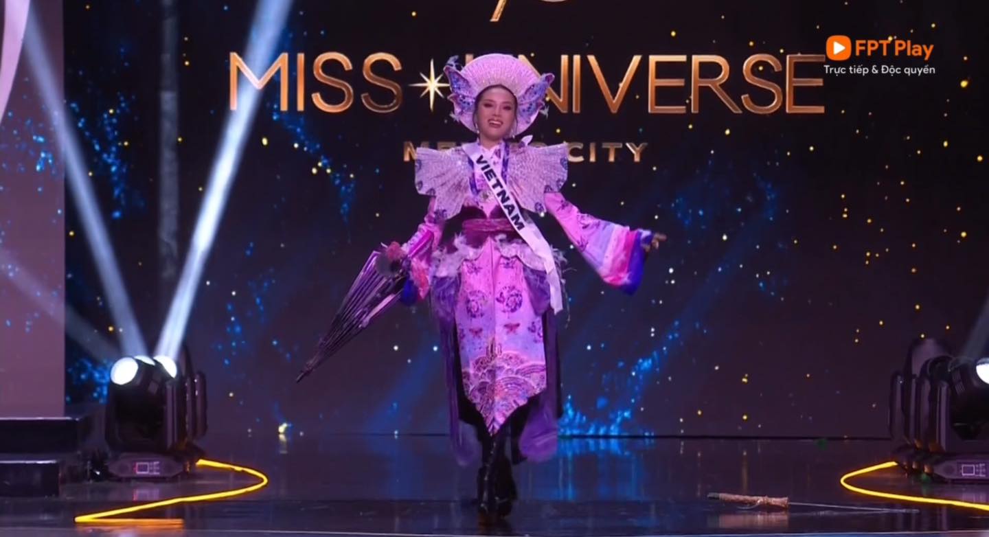 Kỳ Duyên là một trong những thí sinh trình diễn cuối cùng. Sau thời gian chờ đợi, người hâm mộ nhan sắc Việt cũng được nhìn thấy Kỳ Duyên xuất hiện mãn nhãn trên sân khấu bán kết Miss Universe 2024.