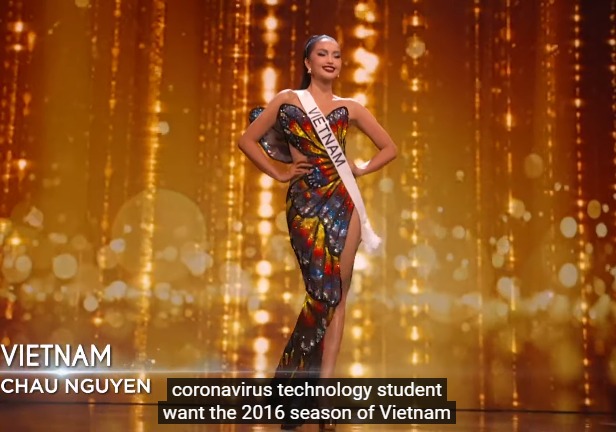 Vào lúc 8h sáng ngày 12/01/2023 theo giờ Việt Nam, bán kết cuộc thi Miss Universe 2022 đã chính thức diễn ra. Trong phần thi trang phục dạ hội, như đã công bố trước đó, Ngọc Châu chinh phục fan sắc đẹp với bộ váy của NTK Chung Thanh Phong mang tên "Hiệu ứng của bướm".