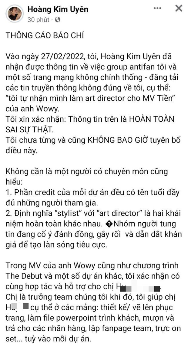 Cụ thể, bạn trai Miko cho biết trong MV và một số dự án lúc trước, anh từng hỗ trợ cho một người chị tên H.: "Khi đó chúng tôi cùng hợp tác dưới tên Co-Ke Stylist, tuy nhiên do định hướng phát triển khác nhau và một số lý do cá nhân, về sau chúng tôi ngừng cộng tác và mỗi người tiếp tục theo đuổi con đường riêng của mình. Vì lý do trên và sự tôn trọng dành cho chị H., tôi không hề sử dụng lại portfolio chung để gửi cho khách hàng, tính từ thời điểm kết thúc hợp tác".