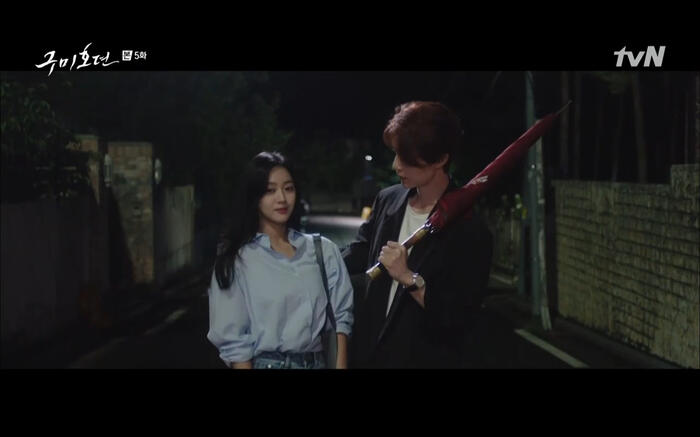 Tập 5 Bạn trai tôi là hồ ly tiếp nối phân cảnh hồ ly Lee Yeon đã nhìn thấy linh khí tỏa sáng quanh Ji Ah. Đó là linh khí hồ ly mà Lee Yeon từng trao cho tình đầu nàng năm trước để khi nào cô tái sinh, anh sẽ nhận ra.